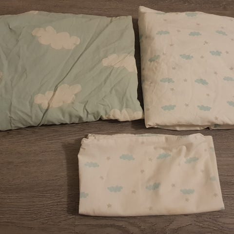 Kuvanmukainen setti: iso pehmo valas, lasten pussilakana ja tyynyliina 150x200/50x60 cm. Ikea, hyvä kunto.