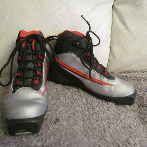 Lasten hiihtomono, värit sininen ja punainen. Monot on varustettu kahdella tarrakiinnityksellä. Pohjat ovat mustat ja sopivat SNS siteeseen. Pohjallisen pituus 20,5 cm