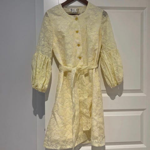 Hakusanoja: vintage, vintagemekko, kukkamekko, kaulusmekko, Finnish design, Made in Finland, 1960-luku, 1970-luku, retro