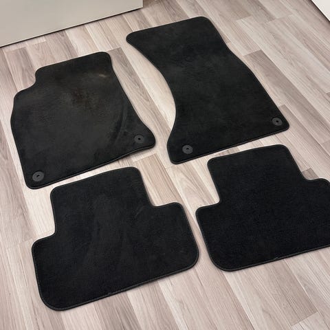 Kuvan käyttämättömäksi jääneet, uudenveroiset lattiamatot.