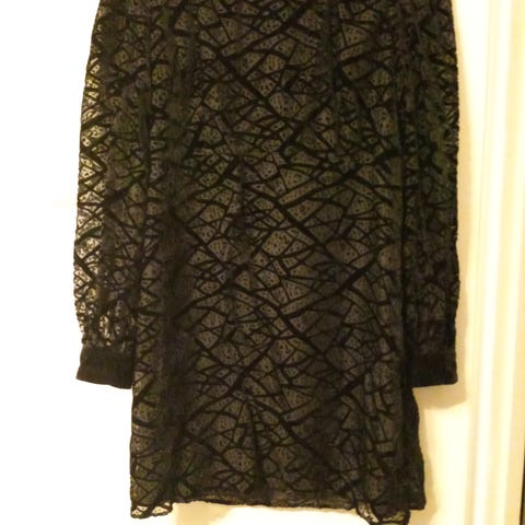 & Other Stories ilta- tai juhlapuku mustassa samettikankaassa. Koko M. Puvussa on pitkä hiha ja vyötäröllä kiristysnyörit. Materiaali on sametti, joka antaa pehmeän ja ylellisen tuntuman.