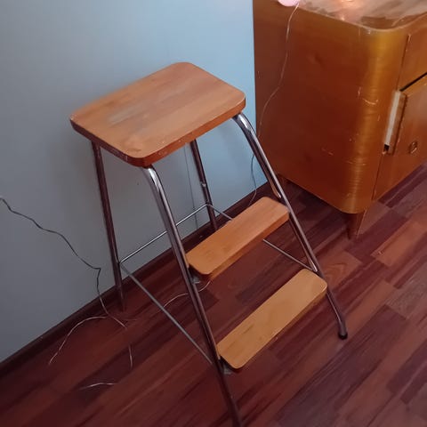 Ok kuntoinen jakkara. Vähän maalitahraa mutta muuten hyvässä kunnossa.