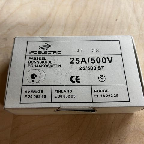 Pohjakosketin 25 A tulppasulakkeille. 500 V. Sulakepohjan värikoodi: Keltainen.