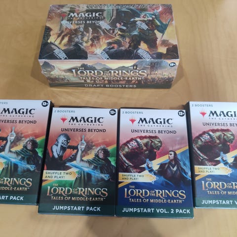 MTG Lord of the rings draft box ja 4 jumpastart boxia ( 8 boosters)