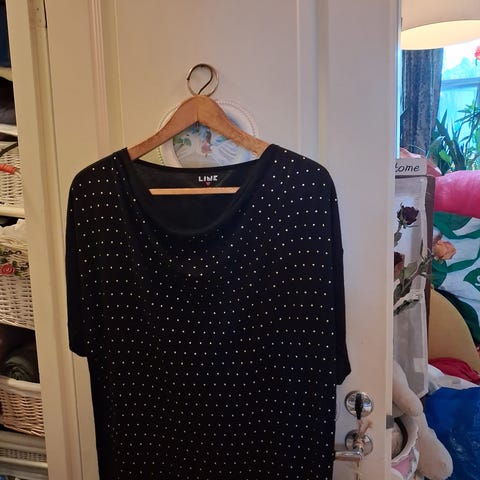 Dress In pusero. Koko L. Polyesteri/ elastaani. Edessä lukee. A perfect day has come.