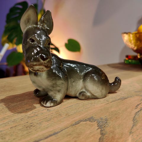 Hakusanat: koirahahmo koirapatsas eläinfiguuri eläinpatsas koriste-esine sisustusesine keräilyesine keräilyfiguuri taide-esine neuvostoliitto neuvostoaika venäjä venäläinen leningrad lfz leima leimattu tehdasmerkintä käsityö lasitettu kiiltävä mustavalkoinen pitkäkorvainen istuva koira koirarotu spanielityyppi lemmikkiaihe koti sisustus hyllykoriste vitriinikoriste nostalginen nostalgia retro retro retro vanha wanha 60-luku 60-luvulta 1960-luku 1960-luvulta 80-luku 80-luvulta 1980-luku 1980-luvulta taide keräily koriste klassinen perinteinen eurooppalainen itäblokki sosialismi kylmäsota design figuuri patsas pienoisveistos eläinaiheinen lahjaidea keräilijälle koirafani koiraharrastus kodinsisustus koristeellinen ajaton harvinainen näyttävä käsintehty tehdastuotanto museotyyli midcentury mcm tyyli historia kulttuuri taidehistoria showroom esillepano keräilykappale antiikkihenkinen vintagehenkinen retrohenkinen sisustustyyli skandinaavinen koti boheemi klassinen sisustus kirjahylly koriste pöytäkoriste vitriini keräilijän aarre nostalgialahja klassikkokappale ajaton design retrodesign