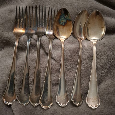 Hopea-aterimet haarukat + veitset 12 kpl,