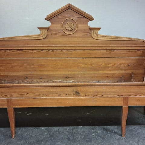1930-LUVUN sänky, jossa upea puinen runko, runkopatja ja irrotettavat päädyt