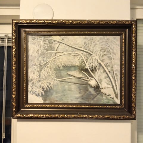 K.Antikainen "Imatrankoski" -Taulu vm. 1981. Koko 118/84 cm karmien ulkomitoista. Nouto. Kuljetus lähialueelle maksua vastaan.