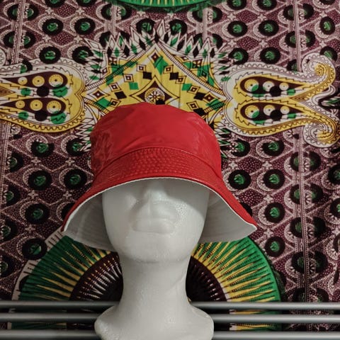 Trendikäs kiiltäväpintainen kalastajanhattu. Puuvillainen sisävuori.