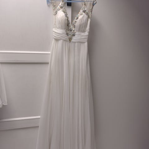 Kerran käytetty juhlamekko. Rintamuksessa tyköistuva pitsikuvio joka jatkuu nyös selän puolelle. Mekko ostettu Porin Juhlavasta. Ollut käytössä 161cm ja 60kg.