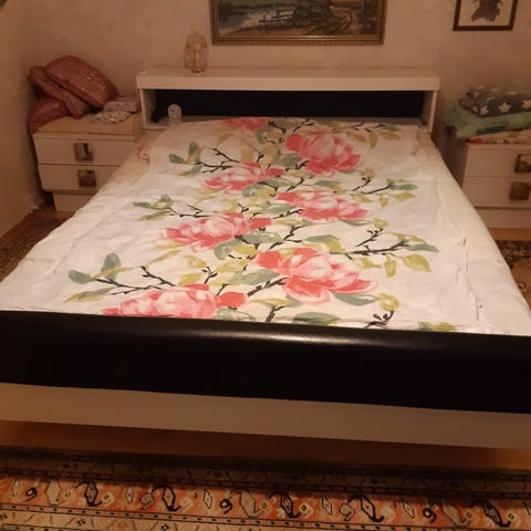 Myydään 160cm jousisänky muuton vuoksi. Kunto ”kohtalainen”, koska sänky on melko vanha, ja kulumaa näkyy pinnoissa mutta muuten ehjä. Mukaan tulee petauspatja + suoja, sekä halutessaan ostaja voi ottaa myös sängyn ympäröivän helmalakanan. Irrotettavat jalat.
