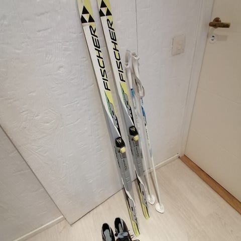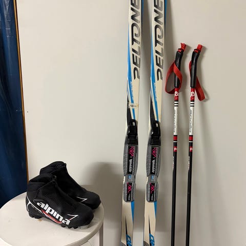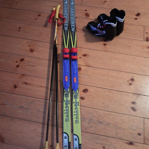 Myynnissä pakettina Karhu sukset 140, Apollo Rex sauvat sauvat ja monot, koko 34. NNN siteellä.