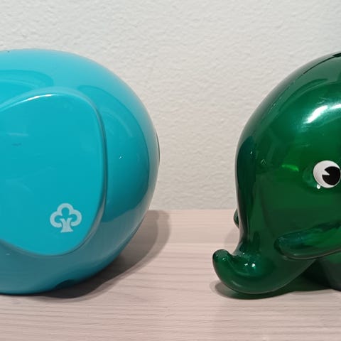 Ajan patinoima Vihdin Säästöpankin säästöpossu – puutteita on, mutta sisällä täysi kolikkoyllätys. Lipas on lähes täysi, eikä minulla ole mitään käsitystä sen sisällöstä.