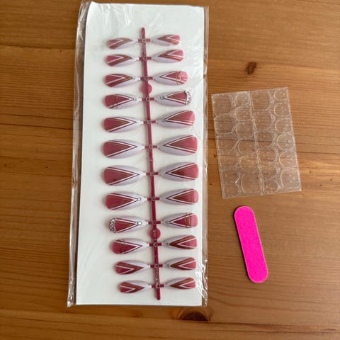 Itsetehdyt press on kynnet koossa XS - S. Settiin kuuluu 2kpl pientä kynsiviilaa, puutikku kynsinauhoille ja liimatarroja kynsien kiinnittämiseen.
