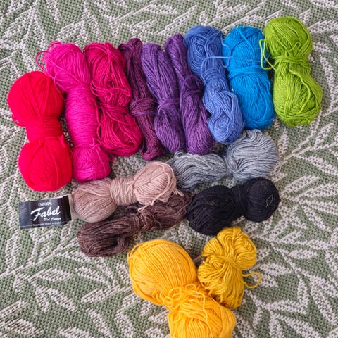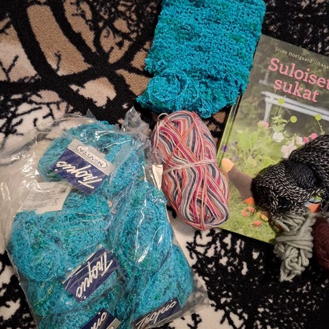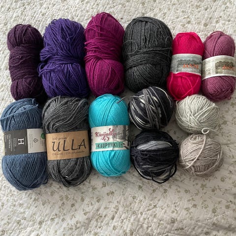 Anika lankapaketti sisältää 10 kerää eri värisiä lankoja. Lankojen värit ovat sininen, punainen, violetti ja musta. Kerässä 50g jasukkapariin kuluu kaksi kerää. Mukana 3 sukkapuikot ja ohjeet