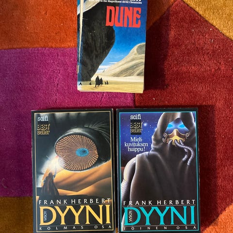 Kirja kertoo planeetasta nimeltä Arrakis, jossa on suuri aavikko ja arvokas mauste nimeltä "melange". Atreides-suku joutuu taistelemaan Harkonnen-sukua vastaan vallasta ja elämästä Arrakiksella. Kirjassa seurataan nuorta Paul Atreidesta ja hänen matkaansa kohti suurta ennustusta ja muutosta.Tekijät/käsikirjoittajat: Frank Herbert ; suomentanut Anja Toivonen ; [suomennoksen tarkistanut Ari Koskinen]Kustantaja: WSOYUlkoasu: 280 sivua ; 21 cmJulkaistu: 1982ISBN: 9789510113769KovakantinenKansipaperi