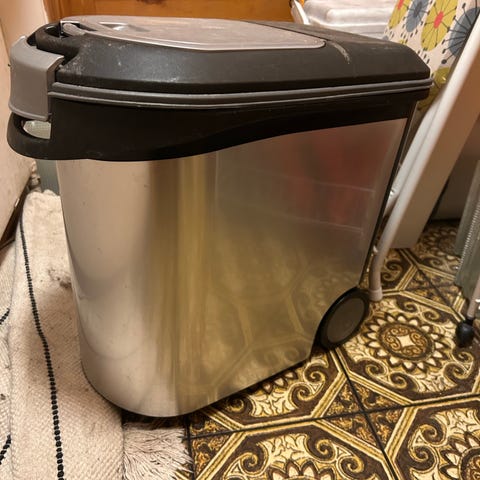 Tiivis säilytysastia rullilla,kannella ja mittakauhalla. Koko L. Hp. 30€ en postita.