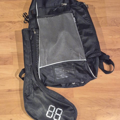 Fatpipen salibandyreppu musta. Laukussa useita taskuja ja erillinen tasku mailalle. Sopii mailojen ja varusteiden kuljettamiseen.