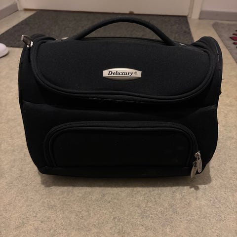 Myydään vedettävä matkalaukku + siihen kuuluva matkakassi + vyölaukku ja näppärä pieni olkalaukku sekä uusi nahkalompakko + uudet meikkipussit, iso ja pieni.