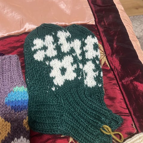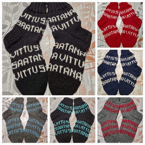 Käsinneulotut villasukat keltamustat