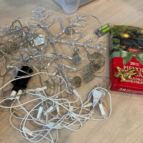 Kuusen latvatähti tai koriste ja valot jotka toimii pattereilla. Patterit ei mukaan. Nouto Pikku-Huopalahti