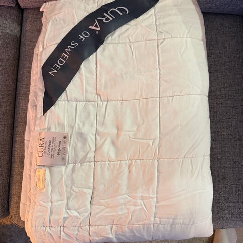 Cura Pearl Classic painopeitto, koko 150 x 210 cm, valkoinen 9kg. Muutaman kerran käytetty. Sisältää oman pussi,-ja tyynylakanan (tyynylakanaa ei käytetty!).