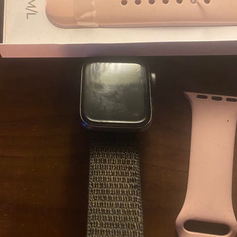 Apple Watch älykello, musta väri, silikoniranneke. Sopii älykkääseen ajan seurantaan ja erilaisiin älytoimintoihin.