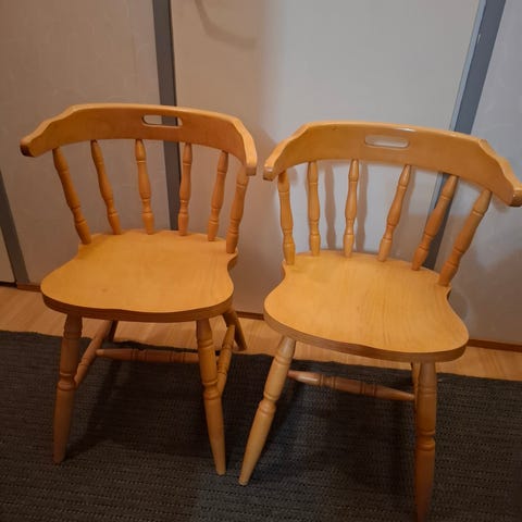 Tyyliltään perinteisten puutuolien selkänojassa on kaunis vinoristi.