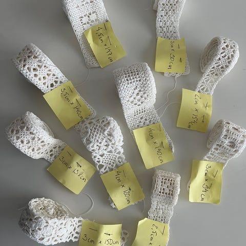 Myydään kuvanmukaiset pitsit. Kaikki myydään kerralla pois yhtenä isona settinä. Osa uutta ja osa pesty.