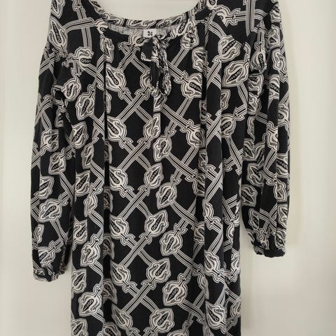 Hyväkuntoinen, musta-valkoinen Nanson pusero/tunika. Halkiot helmassa kummallakin sivulla.