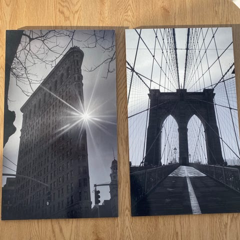 IKEA GRÖNBY taidekoristeet sisältävät useita mustavalkoisia valokuvakuvioita, jotka kuvaavat kaupunkimaisemia. Kuvissa on muun muassa Empire State Building ja sillan rakenteita. Sopii seinäkoristeeksi eri tiloihin.