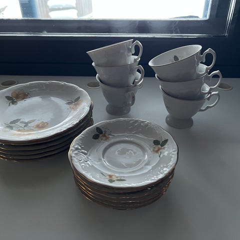 Wawel merkkinen ruokailuastiasto. Matalia-, syviä- ja leipälautasia kutakin 6 kpl.