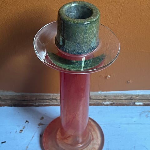 Upea, virheetön Toikan Primo kynttilänjalka taidelasi 1980/90 -lukujen vaihteesta, korkeus 20,5 cm, Nuutajärvi -tarra alkuperäisellä paikallaan, signeeraus pohjassa Oiva Toikka Nuutajärvi Notsjö sts. Kunto kuin uusi, 5/5, poikkeuksellisen kaunis yksilö.