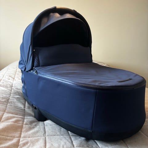 Kahdella vauvalla joitain kuukausia käytössä ollut Cybex Priam Lux vaunukoppa värissä Melange Grey. Kunto erittäin siisti ja toimiva. Kaikki vetoketjut ja kopan toiminnot toimivat moitteetta. Sisäosat pesty hajusteettomasti. Käytetty Cybex Priam 3 -rungon kanssa.