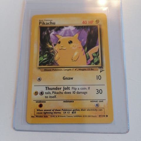 Tyydyttävässä kunnossa oleva Pikachu kortti.