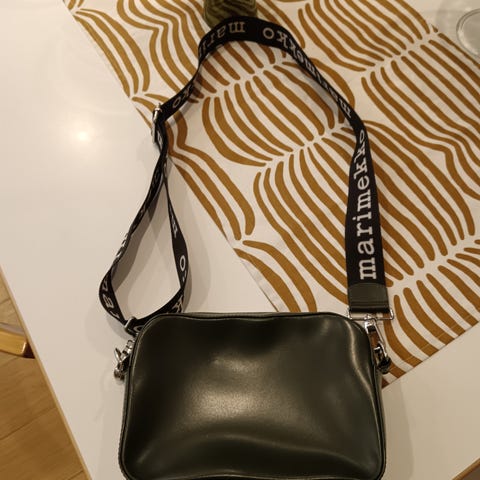 Marimekon vihreän sävyinen Gratha laukku. Laukku hyvässä kunnossa ja yleisilme siisti, nahassa nähtävissä muutamia naarmuja kirkkaassa valossa/läheltä (kts kuvat).