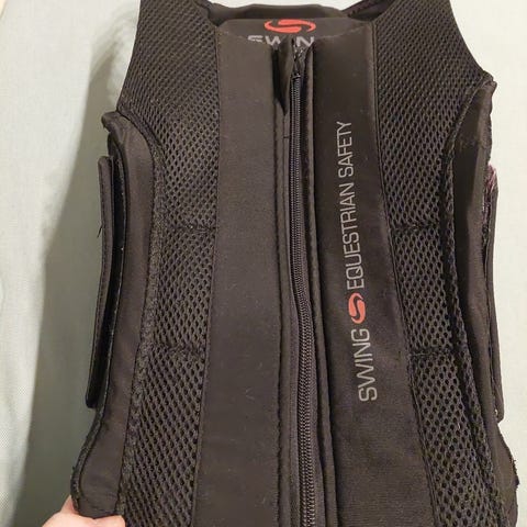 Kaksi lasten turvaliiviä ratsastukseen myynnissä. Molemmat hyvässä ja siistissä kunnossa. Säädöt toimivat. Molemmissa turvaluokitus level 3.