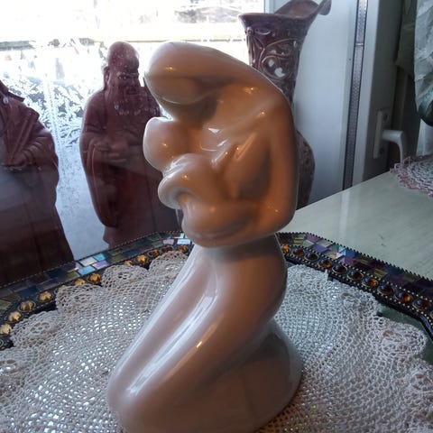 Taideveistos alaston nainen istumassa