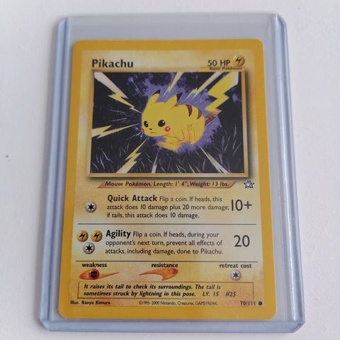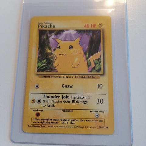 Tyydyttävässä kunnossa oleva Pikachu kortti.