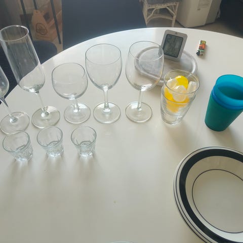 Annetaan siniset lasit. Yhdessä pieni särö, muut ovat täysin ehjiä.
