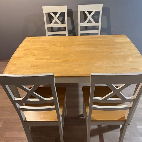 Tukeva laatikolla varustettu Juvin täyspuinen ruokapöytä. Nouto Loppi kk.