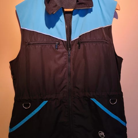ProDog koulutusliivi, koko XS, musta-harmaa. (Mielestäni enemmänkin kokoa S, toki riippuu, paljonko vaatetta alla.) Liivissä on etutaskut vetoketjuilla (3) ja takana säilytystaskut ja kiinnityskohtia. Designed in Finland.