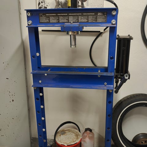 Tarpeettomana rasvaprässi säiliöllä. Käytetty kuorma-auton rasvaamiseen. Säiliö puolillaan vaseliinia.