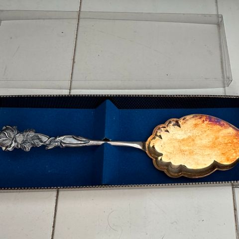 Musla uushopeinen kakkulapio, jossa on kukkakuvio. Pituus: 20 cm. HK o/y