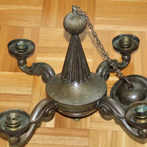 Omintakeinen, lievästi projektikuntoinen kattovalaisin 1930-luvulta. Metallirunko suora ja tukeva, puuosat - ilmeisesti mahonkia - erinomaisen siistissä alkuperäiskunnossa. Alkuperäiset kangaspäällysteiset johdotukset. Varjostinkuvut kadonneet. Suunnittelijasta ja valmistajasta ei ole varmaa tietoa, nettihakujen mukaan valaisin saattaisi olla Taito Oy:n tuotantoa. Korkeus 98 cm, halkaisija 62 cm, paino n. 5 kg. Lievä projekti siis! Kotiinkuljetus järjestyy samaan hintaan Tampereella ja naapurikunnissa, lähetyskulut lisätään. Kysäise!
