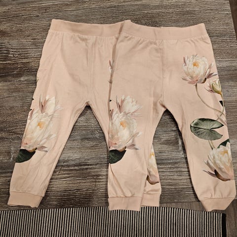 Kauniit Molo housut, ihana pehmoinen materiaali, koko 86cm. Pientä pintanyppyä ja kaksi pientä reikää, käytetty siitä huolimatta.
