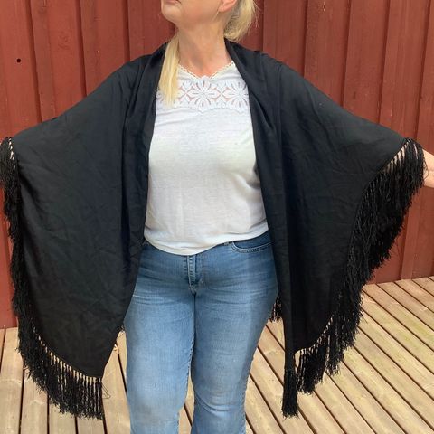 Myydään aito vanha Suomi-aiheinen ohut huivi / liina, valmistaja Turun Verkatehdas.