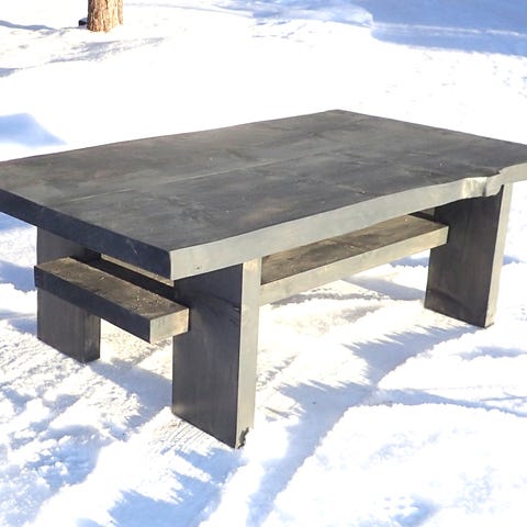 Vekeltä n. 4 vuotta sitten ostettu Lana lankku sohvapöytä antiikki/musta. Pituus 120cm. Puupinnassa naarmua ja käytön jälkeä (kts. kuvat).