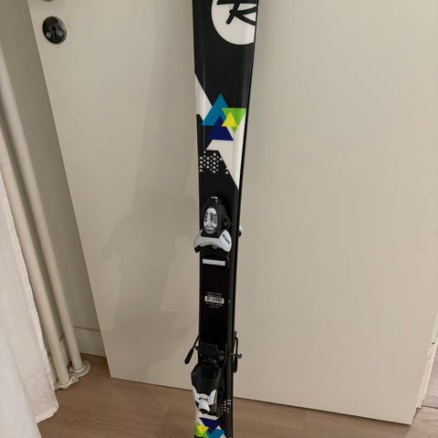 Rossignolin 116cm laskettelusukset siteillä. Hyvässä kunnossa, toisessa suksessa yksi näkyvämpi naarmu pohjassa (kts. viimeinen kuva).